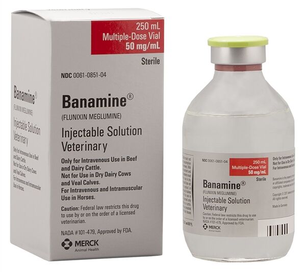Banamine Injectable Solution in as anti-inflammatory and analgesic. Used in horses for the alleviation of
