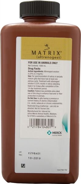 chronic endometritis). Underdosing of MATRIX may lead to the occurrence of cystic follicles. Gilts must