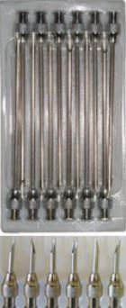 Hypodermic Needles. Stainless steel. Round hub. Packaged in cardboard box or plastic clear case. 12/pkg.