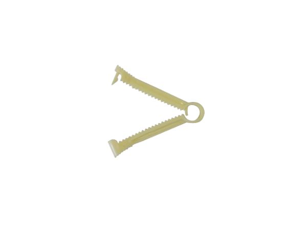 Sterile Umbilical Clamp helps prevent navel in- fection. Self-locking; disposable plastic. Single.